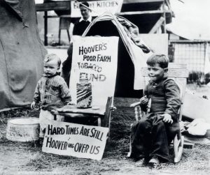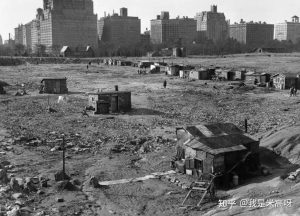 ▲被称为“胡佛村”的临时棚户区遍及美国各地,“胡佛村”是以胡佛总统的名字命名的,他被认为应该对经济萧条负责