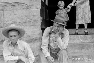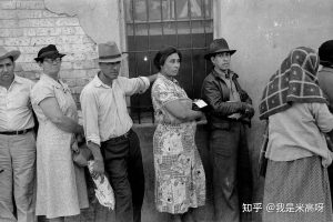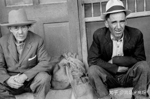 这是美国摄影师在当时拍摄的一组照片,从黑白照片中,一个个精神萎靡,眼神空洞,对未来没有任何希望。这与几年前《了不起的盖茨比》这部小说所描绘的纸醉金迷的黄金时代形成了鲜明对比。