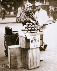 ▲ 失业的纽约人被迫在街上卖苹果,以维持生计