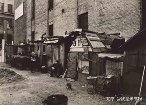 有些人拥有一定的建筑技能,他们就会用砖石来建造自己的房子。然而,对于大多数人来说,能有一个木头房子就不错了。实际上,他们会用自己能够找到的任何材料来建造自己的居住之所,包括黄杨木、硬纸板,以及他们所能找到的其他任何金属板条。有些人甚至连房子都建不起来,就只能生活在水管里,或者干脆就席地而睡。在这一时期,大多数人被迫向那些有幸获得住房的人乞讨食物。