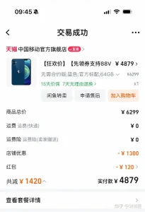 你支付的购置税、保修、新手机溢价等费用,在转手时没人会考虑。