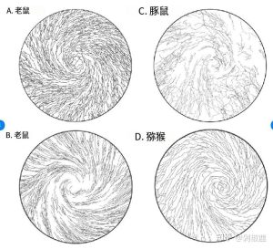 角膜神经 (这是几种不同动物的角膜神经,以对螺旋模式在角膜的浅表皮层附近终止)。